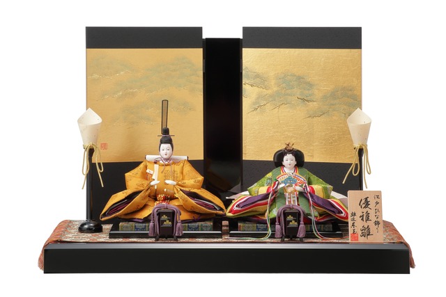 間口65×奥行40×高さ41(cm) ひな人形の良き伝統を意識した優雅シリーズ-の中の、高級品です。 有職衣装の黄櫨染は、歴代天皇が即位などの重要儀式の際にお召しになる 格式№1の衣装。 ※ご注文確定の前に、必ずAboutの会社説明をお読み下さい