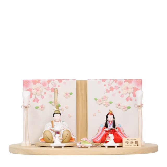 間口60×奥行32×高さ30(cm) 正絹ならではの優しく柔らかな生地を用いています。 着付師・東之華のお着付けで、伝統的ながら、華やかで美しい感性が光る逸品。 桜でトータルコーディネートされた洒落たお飾り。 ※ご注文確定の前に、必ずAboutの会社説明をお読み下さい