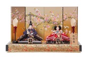 気品溢れる西陣織の敷き布。その上に落ち着いた衣装のお人形がより一層映えて・・・。