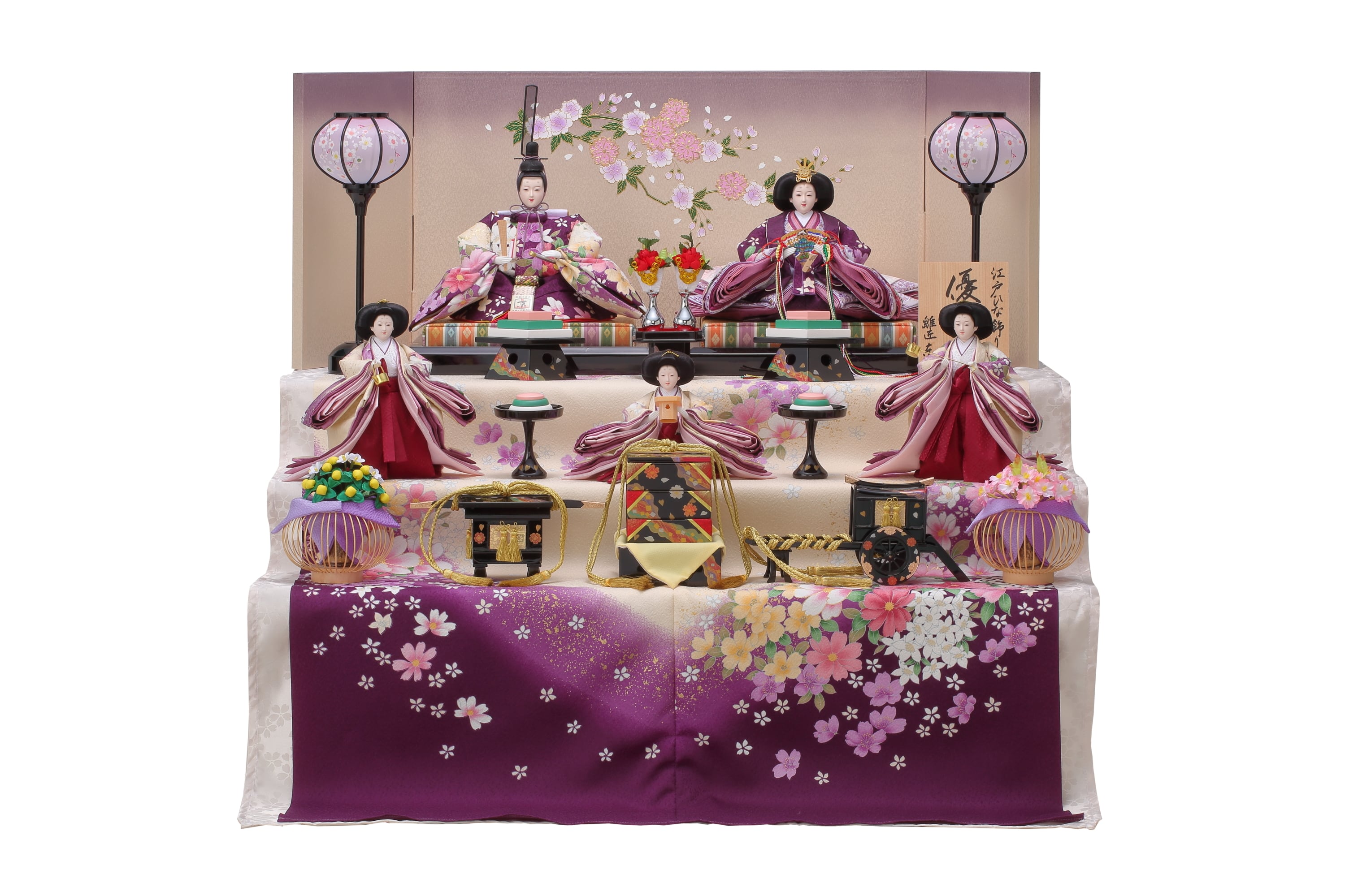 紫をテーマカラーに全体をまとめた三段飾り。